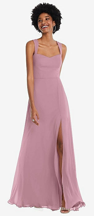 Contoured Wide Strap Sweetheart Maxi Dress in dusty pink