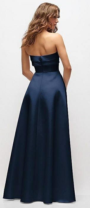 Strapless Satin Drop Waist Gown with Full Skirt in midnight navy