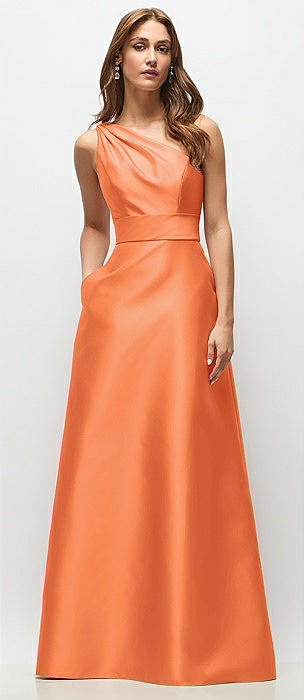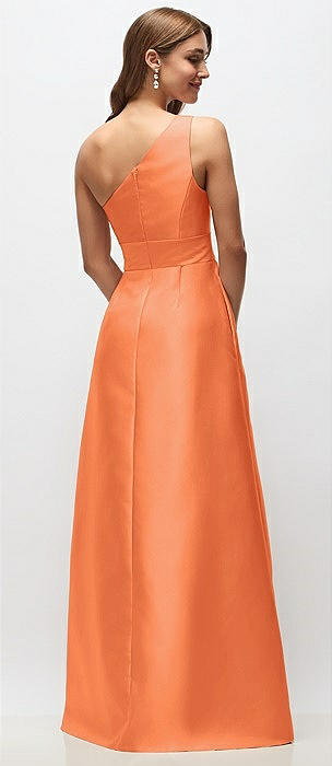 Draped One-Shoulder Satin Maxi Dress with Pockets in portofino orange