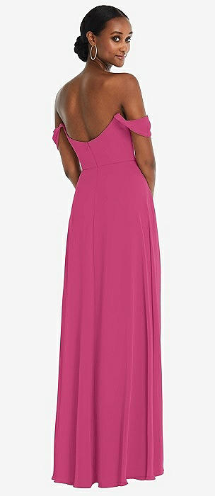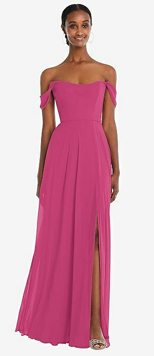 Off-the-Shoulder Basque Neck Maxi Dress with Flounce Sleeves in tea rose