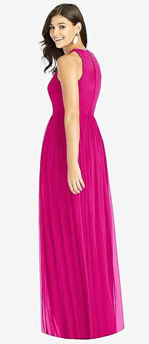 Shirred Skirt Jewel Neck Halter Dress with Front Slit in think pink