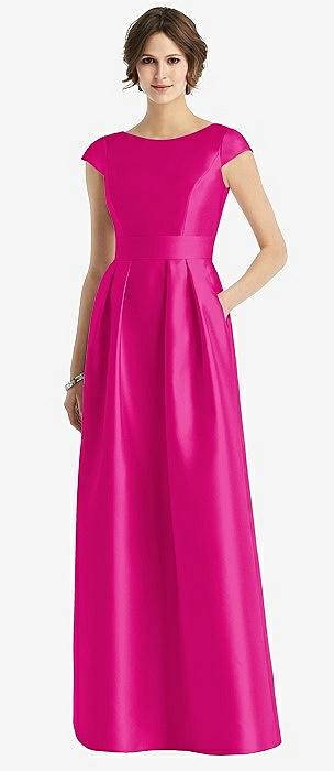 Cap Sleeve Pleated Skirt Dress with Pockets in think pink