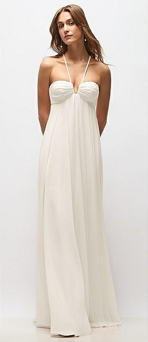 Empire Waist Chiffon Halter Maxi Dress with Convertible Spaghetti Straps in ivory
