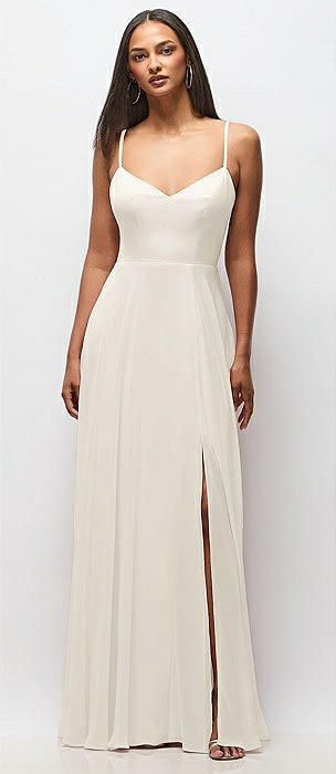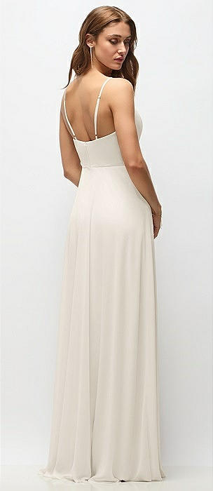 Wrap Bodice Chiffon Maxi Dress with Adjustable Spaghetti Straps in ivory