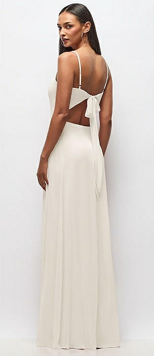 Tie-Back Cutout Maxi Dress with Front Slit in ivory