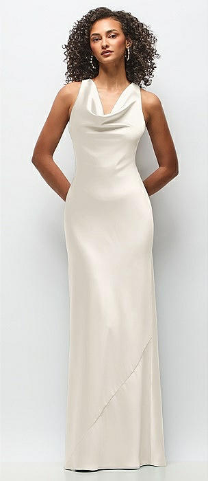 Cowl Neck Criss-Cross Back Satin Maxi Dress in ivory