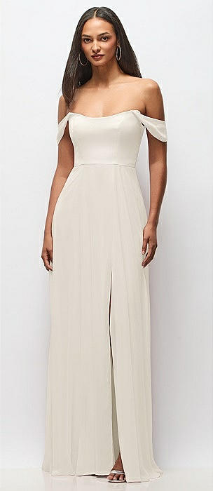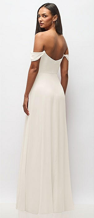 Off-the-Shoulder Draped Neckline Maxi Dress in ivory