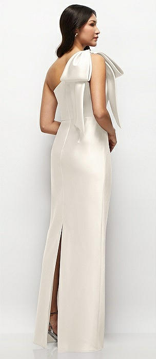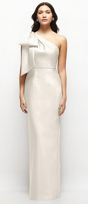 Oversized Bow One-Shoulder Satin Column Maxi Dress in ivory