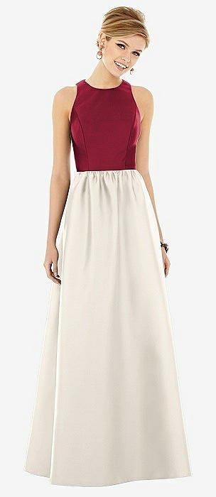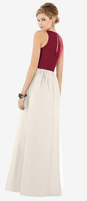 Sleeveless Keyhole Back Satin Maxi Dress in ivory