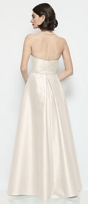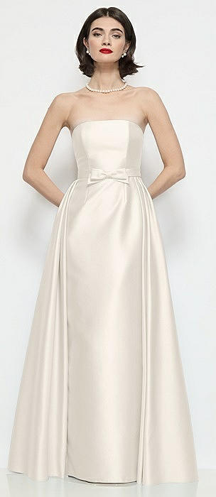 Strapless Bow-Waist Satin Column Dress with Overskirt