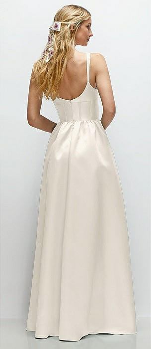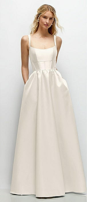 Scoop Neck Drop Basque Skirt Satin Maxi Dress with Pockets in ivory