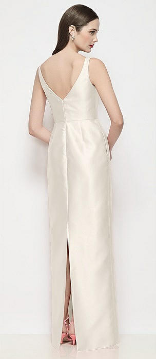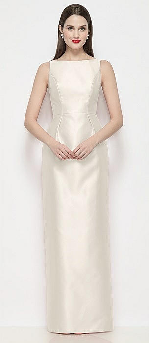 Bateau Neck Satin Maxi Dress with Pleated Column Skirt in ivory