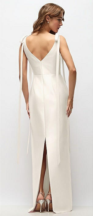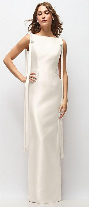 Bateau Neck Satin Column Maxi Dress with Exaggerated Tail Bow Straps in ivory