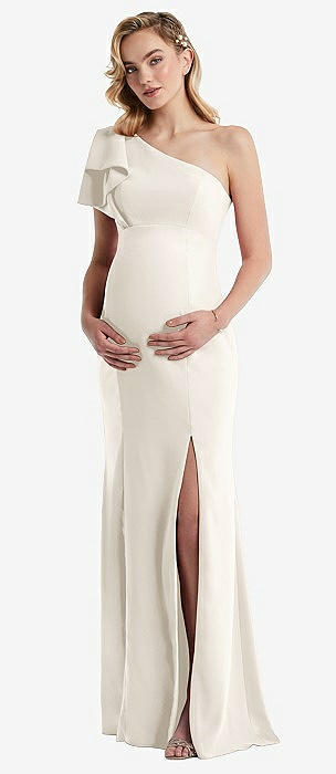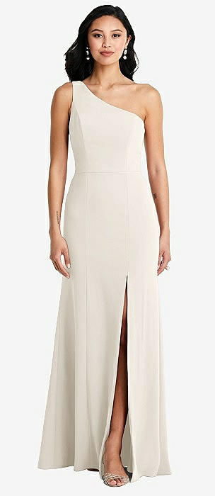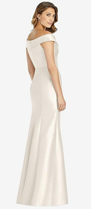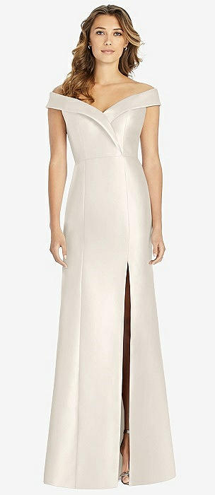 Off-the-Shoulder Cuff Trumpet Gown with Front Slit in ivory