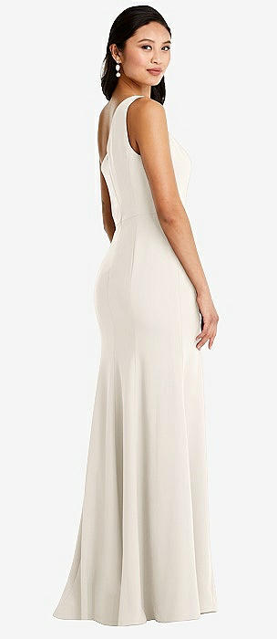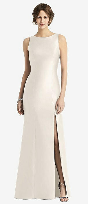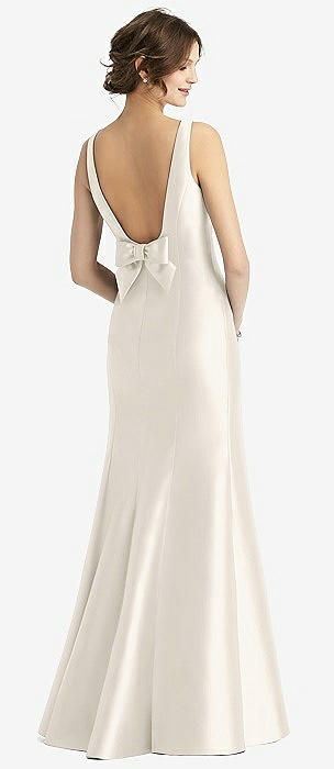 Sleeveless Satin Trumpet Gown with Bow at Open-Back in ivory