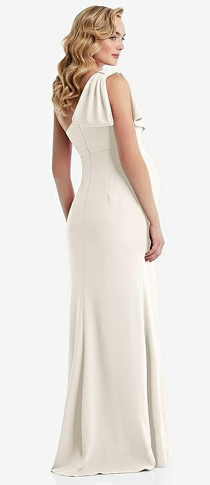 Off-the-Shoulder Bow-Back Satin Trumpet Gown in ivory