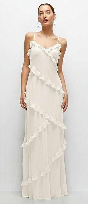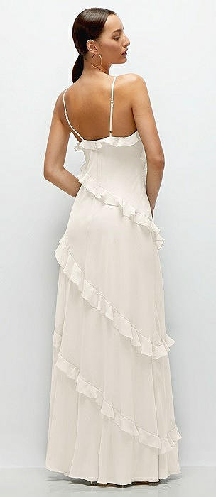 Asymmetrical Ruffle Chiffon Bias Slip Maxi Dress in ivory