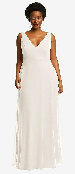 Deep V-Neck Chiffon Maxi Dress in ivory