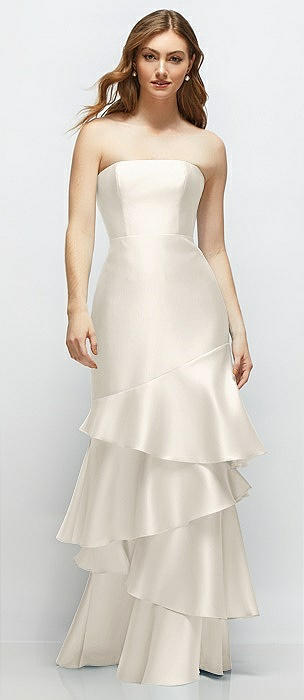 Strapless Bodycon Maxi Dress with Tiered Ruffle Skirt in ivory