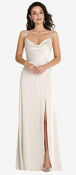 Cowl-Neck A-Line Maxi Dress with Adjustable Straps in ivory