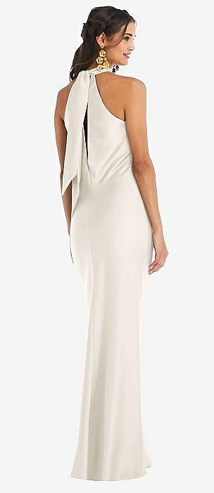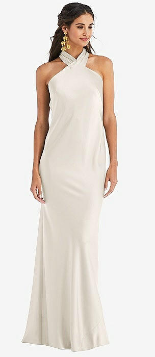 Draped Twist Halter Tie-Back Trumpet Gown in ivory