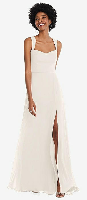 Square Neck Chiffon Maxi Dress with Circle Skirt in ivory