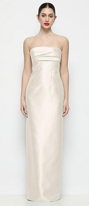 Strapless Pleated Empire Satin Column Maxi Dress in ivory