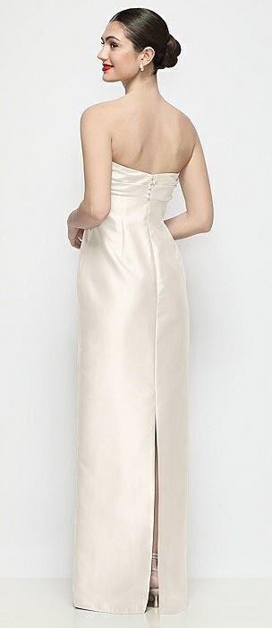Strapless Cuff Neck Satin Maxi Dress with Column Skirt in ivory