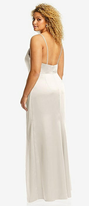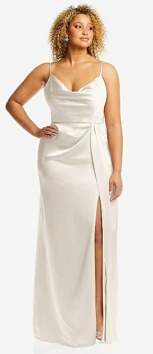 Cowl-Neck Draped Wrap Maxi Dress with Front Slit in ivory