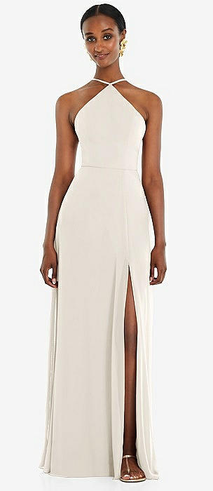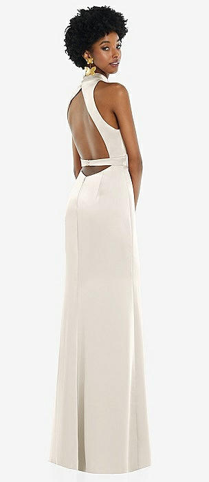 Draped Twist Halter Tie-Back Trumpet Gown in ivory