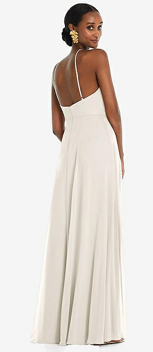 Diamond Halter Bias Maxi Slip Dress with Convertible Straps in ivory