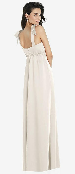 Flat Tie-Shoulder Empire Waist Maxi Dress with Front Slit