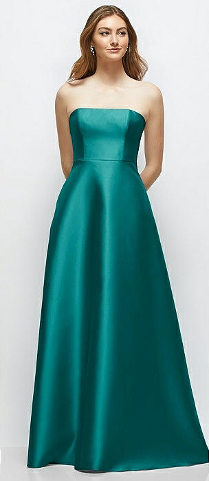 Strapless Bias Cuff Bodice Satin Gown with Pockets in jade