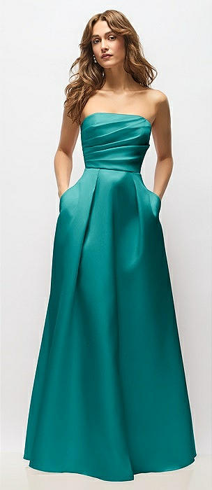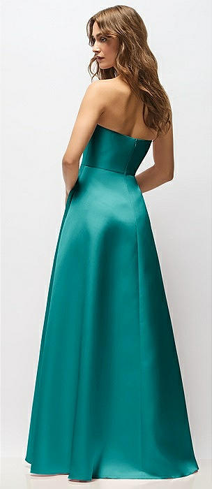 Strapless Satin High Low Dress with Pockets in jade