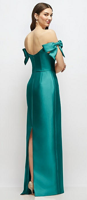 Off-the-Shoulder Bow-Back Satin Trumpet Gown in jade