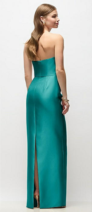 Strapless Satin Column Dress with Back Slit in jade