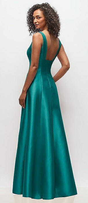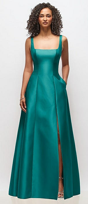 Sleeveless Square-Neck Princess Line Gown with Pockets in jade