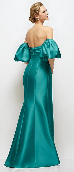 Off-the-Shoulder Bow-Back Satin Trumpet Gown in jade