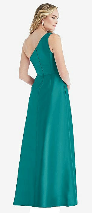 Bow One-Shoulder Full A-Line Satin Maxi Dress in jade