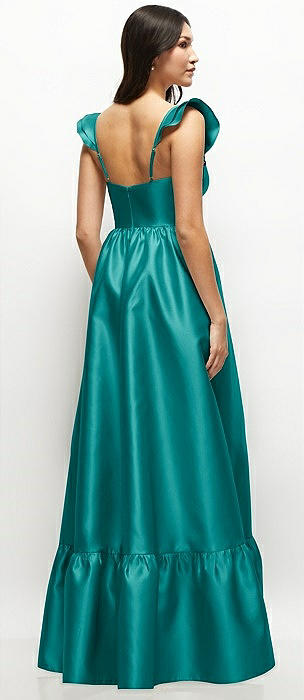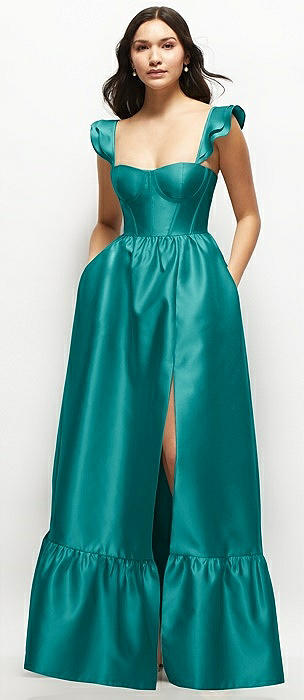 Satin Corset Maxi Dress with Ruffle Straps & Skirt