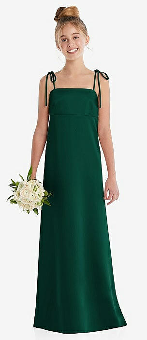 Tie Shoulder Empire Waist Junior Bridesmaid Dress in hunter green