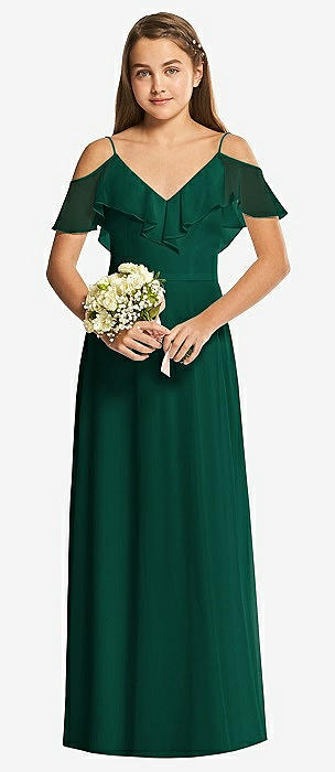 Dessy Collection Junior Bridesmaid Dress JR548 in hunter green