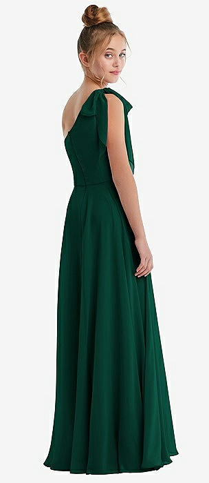 One-Shoulder Scarf Bow Chiffon Junior Bridesmaid Dress in hunter green