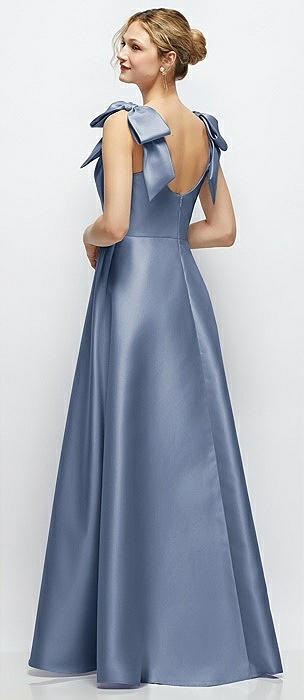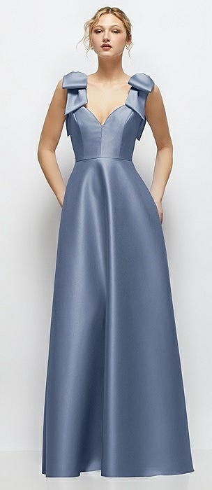 Deep V-Neck Satin Ball Gown with Shoulder Bows in larkspur blue
