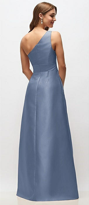 Draped One-Shoulder Satin Maxi Dress with Pockets in larkspur blue
