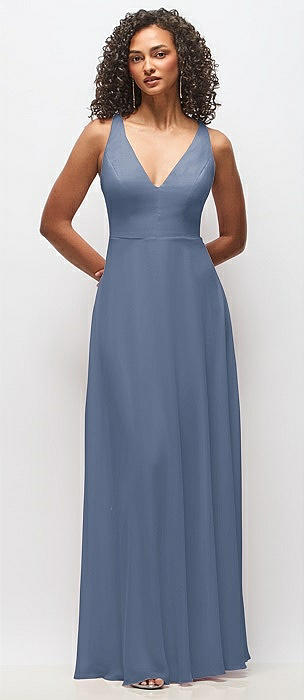 Deep V-Neck Chiffon Maxi Dress in larkspur blue