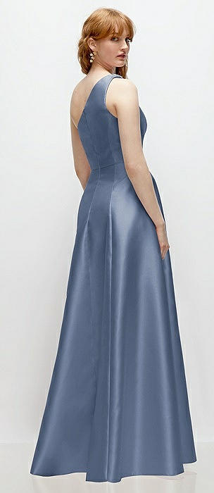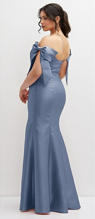 Bow One-Shoulder Satin Trumpet Gown in larkspur blue