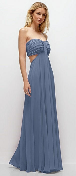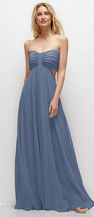 Strapless Empire Waist Cutout Maxi Dress with Covered Button Detail in larkspur blue