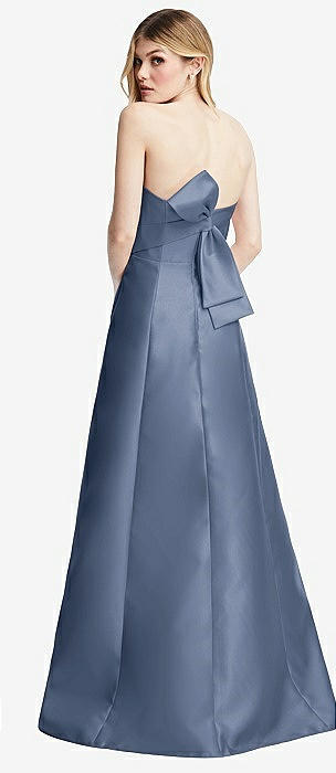 Strapless A-line Satin Gown with Modern Bow Detail in larkspur blue