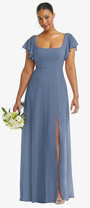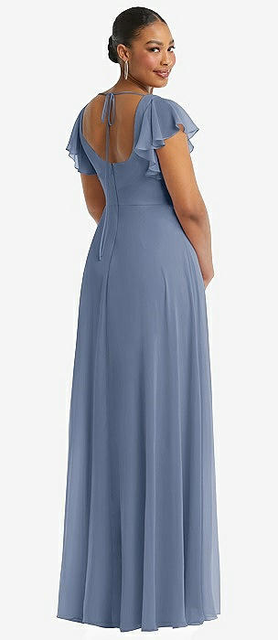 Flutter Sleeve Scoop Open-Back Chiffon Maxi Dress in larkspur blue